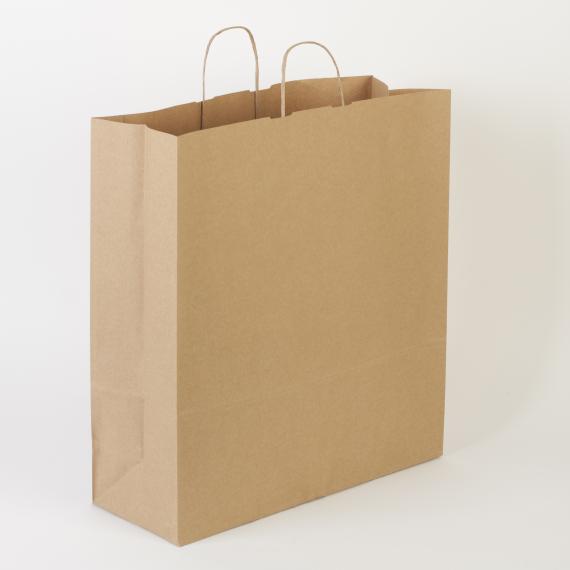 - Bolsas fabricadas con papel kraft de 100 g/m², gran resistencia a roturas y asas rizadas para fácil itar el transporte