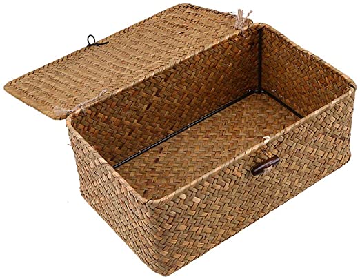 IGNPION - Cajas de mimbre trenzado con tapa, cajas portaobjetos de madera...