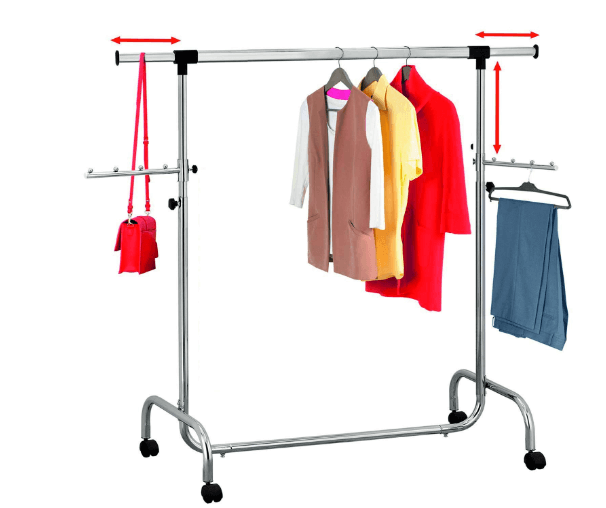 - [Tendedero multifuncional] Varillas altas y bajas para colgar ropa de diferentes longitudes; ganchos a ambos lados para colgar bolsos y sombreros; estante inferior para guardar cajas, zapatos, etc