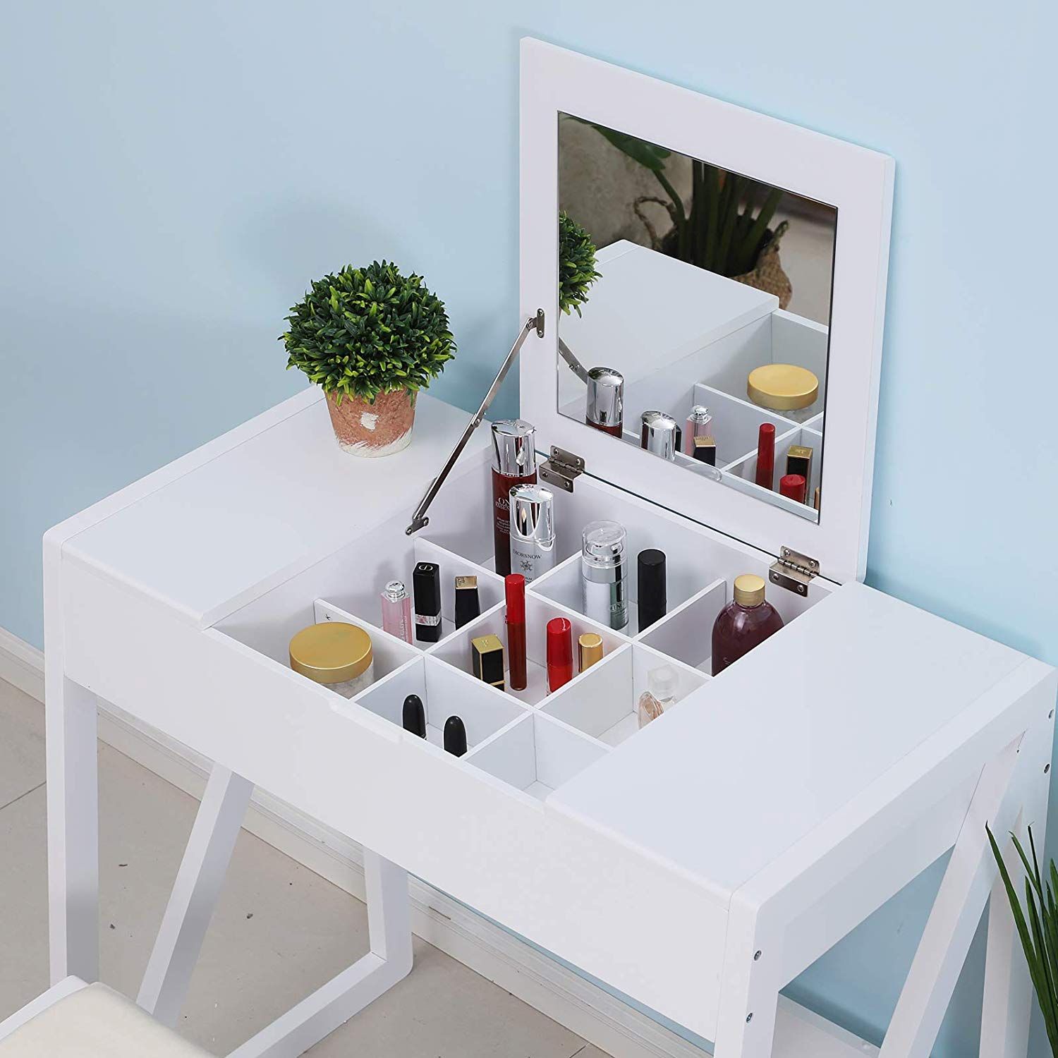 - ćDiseƱo inteligente 2 en 1ć Un verdadero multitalento: levanta la tapa, tendrĆ”s un tocador con espejo. Si se cierra, se convierte en un prĆ”ctico escritorio.